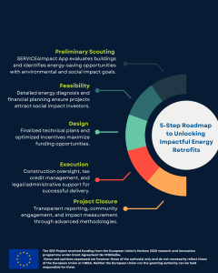 1. Technical Assistance: From energy diagnostics to project oversight, nonprofits receive step-by-step guidance. Tools like the SERVICE4Impact App, developed by ENEA, streamline building assessments and identify priority interventions.