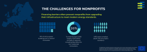 Europe’s ambitious climate goals demand an annual investment of €243 billion for building renovations, €64 billion of which is allocated to non-residential buildings. The nonprofit sector plays an essential role, representing 13% of Europe’s workforce and providing critical services like education and housing. Yet, NPOs face unique challenges that limit their ability to invest in energy efficiency: