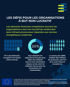 Les objectifs climatiques ambitieux de l’Europe nécessitent un investissement annuel de 243 milliards d’euros pour la rénovation des bâtiments, dont 64 milliards d’euros pour les bâtiments non résidentiels. Le secteur à but non lucratif joue un rôle essentiel : il représente 13 % de la main-d’œuvre européenne et fournit des services essentiels, tels que l’éducation et le logement. Pourtant, les organisations à but non lucratif sont confrontées à des défis uniques qui limitent leur capacité à investir dans l’efficacité énergétique :